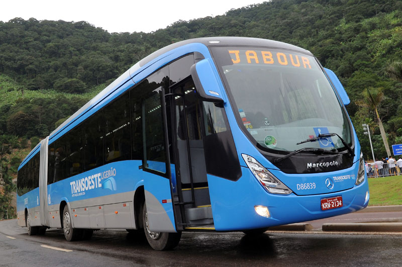 Damit operieren die Mercedes-Benz Busse als erste Fahrzeuge auf den exklusiven Hauptachsen im Omnibus-Verkehrssystem, das durch mehrere Zubringerlinien gespeist wird. Für den BRT- Korridor „Transoeste“ von über 50 Kilometern wird eine signifikante Reduzierung der Reisezeit um 50 Prozent sowie eine Beförderungskapazität von rund 220.000 Passagieren am Tag erwartet. Der in Brasilien unter dem Namen „Ligeirão“ (großer Schnellbus) bekannte Gelenkbus überzeugt durch eine Personenbeförderungskapazität von bis zu 145 Fahrgästen. „Der Großauftrag belegt das Vertrauen der lokalen Nahverkehrs-unternehmen in unser Produktportfolio und unsere Expertise rund um die urbane Mobilitätslösung, Bus Rapid Transit“, bekräftigt Jürgen Ziegler, Präsident von Mercedes-Benz do Brasil und CEO für Lateinamerika. „Die Metropole Rio de Janeiro entscheidet sich mit den Mercedes-Benz Gelenkbussen für einen absoluten Marktführer im Land. Im lokalen Markt in Rio de Janeiro hält Mercedes-Benz do Brasil sogar einen Marktanteil von über 70 Prozent – das ist sicherlich ein schlagkräftiges Verkaufsargument.“ Für den Gelenkbus mit dem Stern spricht zudem seine moderne BlueTec 5 Technologie. Das Abgasnachbehandlungssystem erfüllt die mit Euro V vergleichbare Abgasnorm PROCONVE P-7, die seit Januar 2012 in Brasilien gilt.