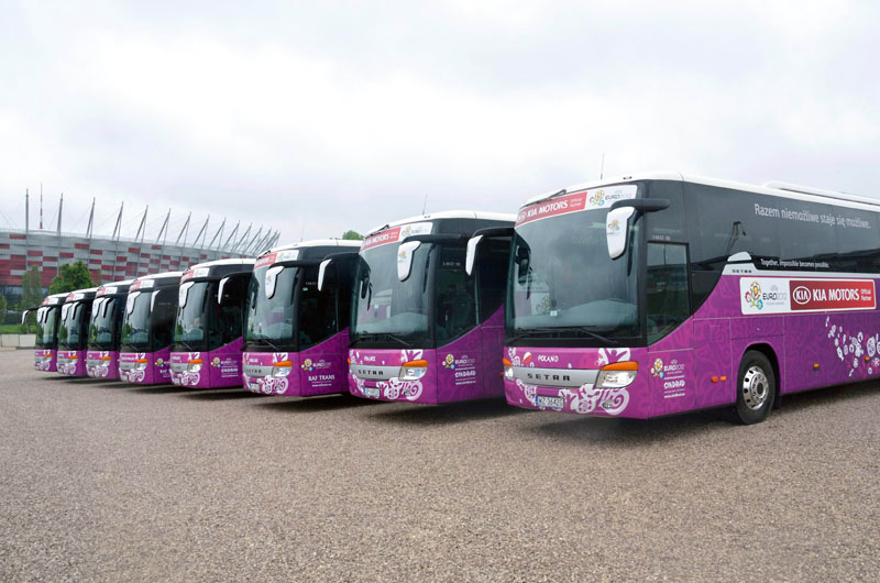 Zwei Monate vor dem Start der EM 2012 wurden die 40 Omnibusse im Setra KundenCenter an die 16 Teams und deren Fahrer übergeben. Diese waren zuvor bei einem zweitägigen Fahrertraining in den Bereichen Sicherheit, Wirtschaftlichkeit und Geschick geschult worden. Die Spiele der EM 2012 werden in den polnischen Fußballarenen Warschau, Posen, Breslau, Danzig sowie in den ukrainischen Stadien in Kiew, Donezk, Lemberg und Charkiw ausgetragen.
