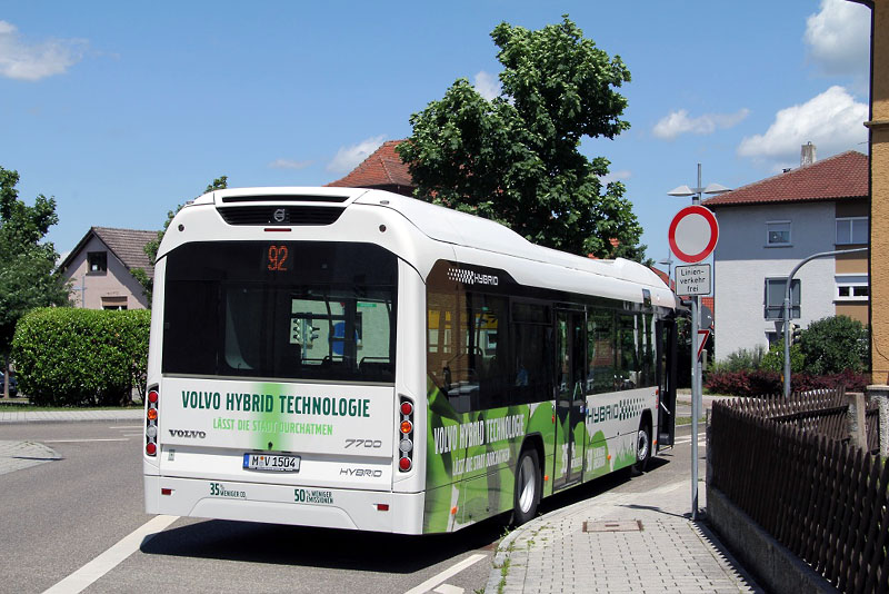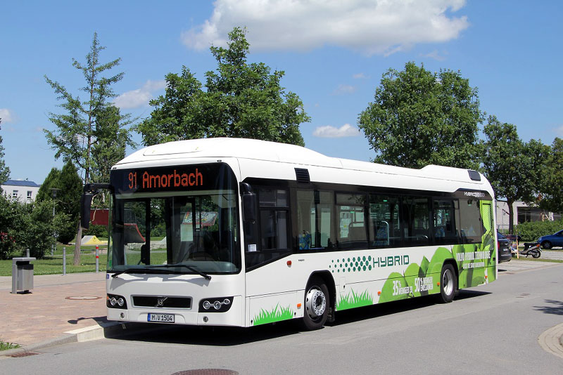 Die Hybridbusse von Volvo verfügen über ein kleines Dieselaggregat und einen Elektromotor. Die beim Bremsen rückgewonnene Energie wird in der Lithium-Ionen-Batterie gespeichert, was zu einer signifikanten Kraftstoffersparnis beiträgt. An Bushaltestellen schaltet sich der Dieselmotor automatisch ab. Der Volvo Hybridbus startet dann leise und abgasfrei nur mit Hilfe des Elektromotors und sorgt somit nicht nur für abgasfreie Haltestellen, sondern nicht zuletzt auch für einen geringeren Geräuschpegel in den Innenstädten.