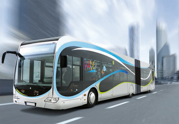 „Prämisse bei der Entwicklung des neuen Citaro war die Verbindung von Sparsamkeit und Wirtschaftlichkeit bei gleichzeitigem Zugewinn an Leistung, Sicherheit und Komfort“, betont Hartmut Schick, Leiter Daimler Buses. Herzstück des „Wirtschaftswunders“ aus dem Hause Mercedes-Benz sind die neu entwickelten Motorenbaureihen BlueEfficiency Power, bestehend aus den Reihensechszylindern OM 936 mit einem Hubraum von 7,7 Litern und OM 470 mit 10,7 Liter Hubvolumen. Beide Motoren erfüllen serienmäßig die Abgasstufe Euro VI und zeichnen sich durch Langlebigkeit, geringen Kraftstoff-, Öl- und AdBlue-Verbrauch aus. Die technischen Innovationen haben den Citaro weder schwerer gemacht, noch sein Raumangebot verkleinert. Beim Sparen hilft zudem das innovative 24-Volt-Rekuperationsmodul: Strom, den die Lichtmaschine kostenlos in der Schubphase produziert, wird in Doppelschichtkondensatoren, sogenannten Supercaps, gespeichert und in der Zugphase des Busses zur Energieversorgung genutzt. Weiterhin senken niedrigere Einstiege der hinteren Türen den Energieverbrauch. Insgesamt spart der Citaro zwischen drei und fünf Prozent Kraftstoff. Das entspricht bei einer üblichen Laufleistung gut 1000 Liter Diesel oder 2,6 Tonnen CO2 pro Jahr. Die Dieselpartikelfilter müssen nur noch alle zwei Jahre bzw. nach jeweils 120 000 Kilometern, gewartet werden. Zum Titel „Bus of the Year 2013“ verhalf dem neuen Citaro auch sein freundliches und markantes Design. Für die neuen Motoren konstruierten die Entwickler ein neues Heckgerippe, welches das Fahrzeug um 30 Millimeter verlängert. Die mit einem Designelement verblendete Heckkuppel des Citaro verleiht dem Bus eine dynamische Silhouette. Weder der Wendekreis noch die Gesamthöhe des Fahrzeugs werden jedoch durch die Änderungen beeinflusst. Eine elegant gerundete, gläserne Blende oberhalb der Heckscheibe betont das hochwertige Erscheinungsbild des neuen Citaro. Neu gestaltet wurden außerdem die Motorklappe sowie die Rückleuchten. Stromsparende und langlebige LED-Lampen kamen für Schlusslichter, Bremsleuchten und Blinker zum Einsatz. Nicht zuletzt punktete der Citaro in Sachen Sicherheit. So schützt ein neues Crash-Element den Fahrer bei Kollisionen, zudem wurde der Bus im Hinblick auf die künftige Vorschrift ECE R 66/01 ausgerichtet. Diese tritt zwar erst im Jahr 2017 in Kraft. Sie schreibt jedoch für das Businnere einen größeren Überlebensraum vor, sollte sich der Bus überschlagen. Von diesem Plus an Sicherheit profitieren Fahrgäste und Unternehmen aber schon heute. Zahlreiche Elemente des Rohbaus konnten bei stärkerer Festigkeit leichter konstruiert werden. Der neue Citaro ist zudem der erste Linienbus überhaupt, der über ESP verfügt. Auch der Fahrgastkomfort ließ die „Bus of the Year“ Jury für den Citaro voten. Einladend fährt der Bus bereits an der Haltestelle vor: An sämtlichen Türen werden die Ein- und Ausstiegsbereiche durch ein breites LED-Band erhellt. Das freundliche Lichtkonzept setzt sich im Innenraum fort und sorgt für eine freundliche Atmosphäre. Da die Dachklappen wie Reflektoren wirken, erzielen die Deckenlampen den Effekt einer indirekten Beleuchtung. Zusätzliche Lichtelemente können gezielt Ruhezonen und Leseecken schaffen. Gleichzeitig verringert die gute Ausleuchtung im hinteren Fahrzeugbereich die Vandalismus-Gefahr. Die neue Form der horizontalen Haltestangen ermöglicht neben der Integration weiterer Lichtelemente auch auswechselbare Werbe-Einleger und sogar Laufbänder, was für die Unternehmen völlig neue Potenziale eröffnet, durch Werbung zusätzliche Einnahmen zu generieren.