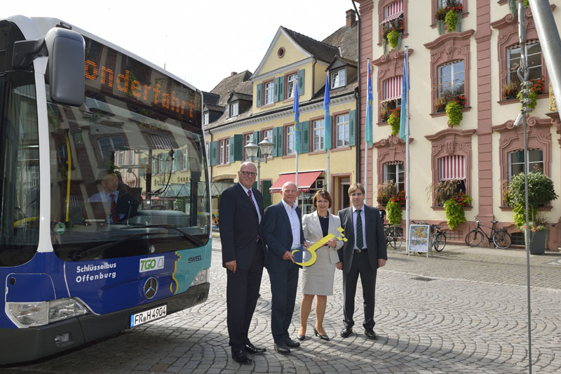 Modern und regional – so lautet das zusammengefasste Selbstbild der Südwestdeutschen Aktienverkehrsgesellschaft SWEG. Von Weil am Rhein und Lörrach im Süden Baden-Württembergs bis in den Raum von Bad Mergentheim im Nordosten erstrecken sich die Verkehrsleistungen aus Nah- und Güterverkehr der SWEG. Über 500 der rund 750 Beschäftigten arbeiten dabei im Bereich der Bussparte. Der moderne Fuhrpark umfasst 300 eigene sowie 50 angemietete Omnibusse. Viele der Fahrzeuge erfüllen bereits heute den gegenwärtig anspruchsvollsten Abgasstandard EEV (Enhanced Environmentally Friendly Vehicle). Beachtliche 61,8 Millionen Fahrgäste beförderte die SWEG mitsamt ihren zehn Verkehrsbetrieben und fünf Tochtergesellschaften im vergangenen Jahr. Wie im gesamten Verkehrsgebiet fällt dem Omnibus in Offenburg eine besondere Bedeutung zu. Sein seit jeher gutes Image verhilft ihm zu einer breiten Akzeptanz in der Bevölkerung. Er gehört ebenso zum Stadtbild wie die historischen Fachwerkhäuser.