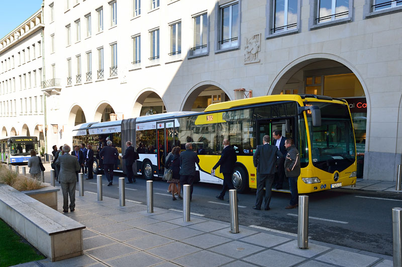 48 Projektpartner aus den Bereichen Fahrzeughersteller, Zulieferer, Betreiber, Behörden, Forschung und Beratungsfirmen haben vier Jahre lang das EBSF-Projekt gestaltet. Gemeinsam suchten sie nach bahnbrechenden, kombinierbaren Fahrzeug-, Infrastruktur- und Betriebsdesigns und Möglichkeiten einer technischen Harmonisierung und Standardisierung. Neben dem Engagement von EvoBus haben auch andere Hersteller ihre Zukunftssicht auf den Nahverkehr der Zukunft gegeben und letztlich mit dem Bau von Demonstrator-Fahrzeugen ein Gesicht verliehen. Viele gute Ideen – da ist sich die EBSF-Projektleitung sicher – werden Zulieferer und Hersteller zeitnah aufgreifen und in ihre Entwicklung und Fertigung einfließen lassen. Andere Lösungsansätze hingegen haben zwar in der Theorie überzeugt, in der praktischen Anwendung jedoch versagt. Mitunter scheiterten die Ideen an kleinen technischen Details, aber auch an rechtlichen Rahmenbedingungen. Doch gerade die „Probleme“ haben neue Handlungsfelder ergeben. EBSF hat gezeigt, wie effektiv und innovativ Hersteller, Zulieferer und Betreiber arbeiten, wenn sie vernetzt denken und handeln. Die Zukunft des ÖPNV wird gemeinsam entschieden.