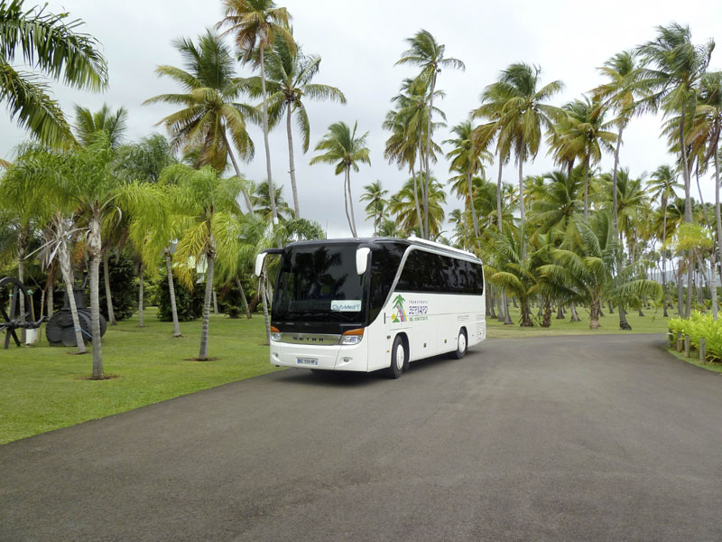 05.10.2012 | Pressemitteilung Daimler Auf der Karibikinsel Martinique beginnt für die Gäste des luxuriösen Club Méditerranée der Urlaub bereits auf der Fahrt zur Ferienanlage. Das französische Tourismus-Unternehmen setzt im Resorthotel „Les Boucaniers“ jetzt auch einen Setra S 411 HD der TopClass 400 als Shuttlebus für die Fahrten von und zum Flughafen sowie für Ausflüge auf der kleinen Antilleninsel ein. Das luxuriös ausgestattete Fahrzeug des Setra Kunden „Transports Bernard“ mit Sitz in Rivière-Salée bietet Platz für 43 Passagiere und ist mit zwei 19-Zoll-Bildschirmen, einer Rückfahr- und einer Panoramakamera ausgestattet. Ein Kühlschrank, getönte Fensterscheiben und eine auf tropische Temperaturen ausgelegte Klimaanlage garantieren den Urlaubern unbeschwerte Fahrten. Firmeninhaber Guy-Albert Bernard: „Wir von Transports Bernard haben den Anspruch, dass der Urlaub bereits mit einem komfortablen Shuttleservice vom Flughafen zum Urlaubsort beginnt. Und in diesem Punkt ist Setra einfach unsere erste Wahl.“
