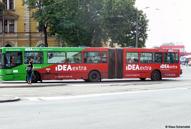 „Lasta“ verfügt auch über Gelenkbusse, die sich im Falle von Ganzreklame kaum von denen der GSP unterscheiden lassen.