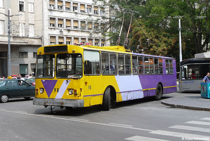 Ziemlich ramponiert sehen die ex-Athener ZIU-Obusse aus; hier Nr. 91 in der Wendeschleife am Studentski trg.