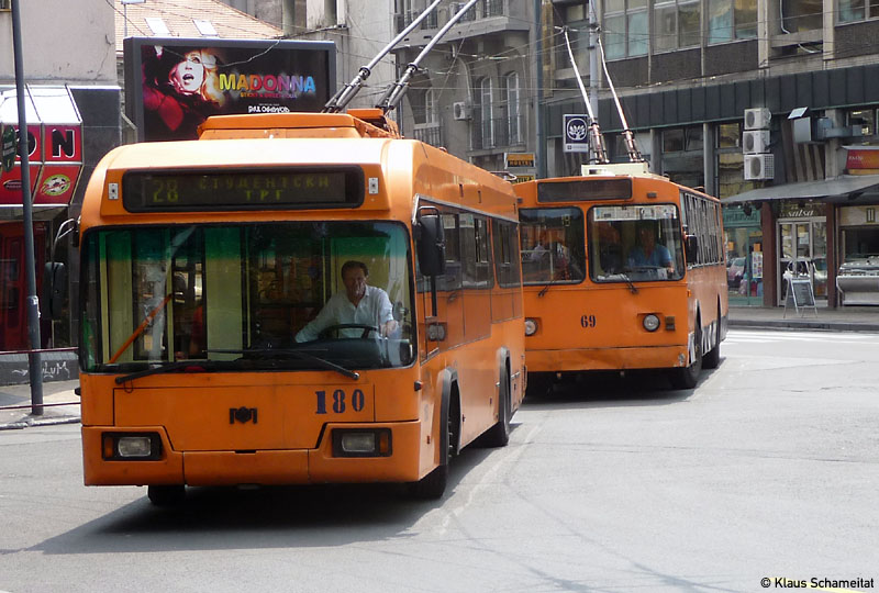 Rund 20 Jahre Altersunterschied: AKSM-Obus Nr. 180 vor ZIU-Obus Nr. 69.