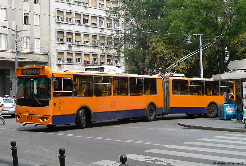 Gelenkobus Nr. 161 (Trolza 62052, Baujahr 2003/2004) gehört zu einer Serie von 12 Wagen (Nr. 153 bis 164).