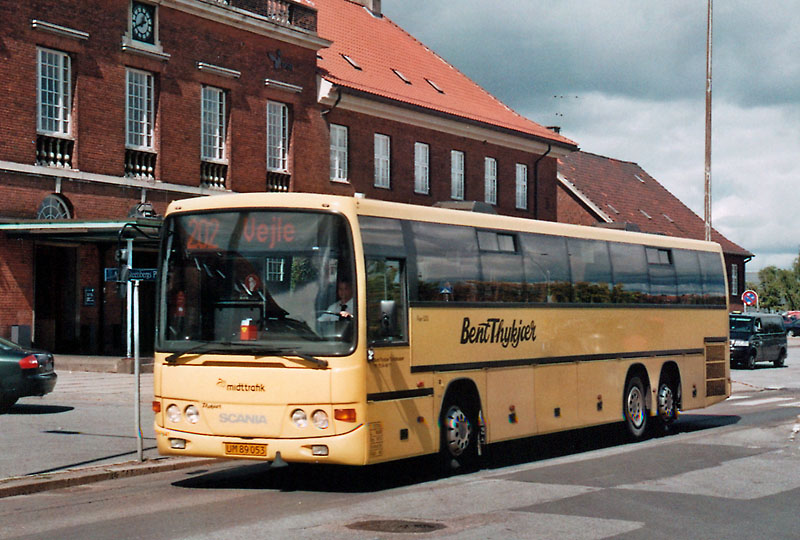 Um ein Scania-Fahrgestell IL 94 IB 6x2 mit Aufbau von Lahti handelt es sich bei diesem Dreiachser aus dem Bestand von Bent Thykjær, der am Bahnhof von Horsens zur Fahrt nach Vejle aufgebrochen ist. | ||