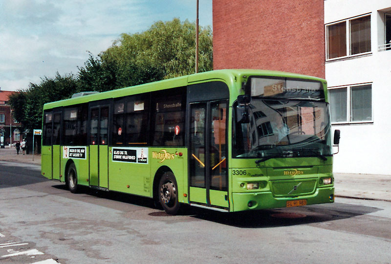 Auch Wagen 3306 hat die Knotenpunkthaltestelle am Bahnhof verlassen und fährt nun auf der Kongensgade in Richtung Innenstadt.