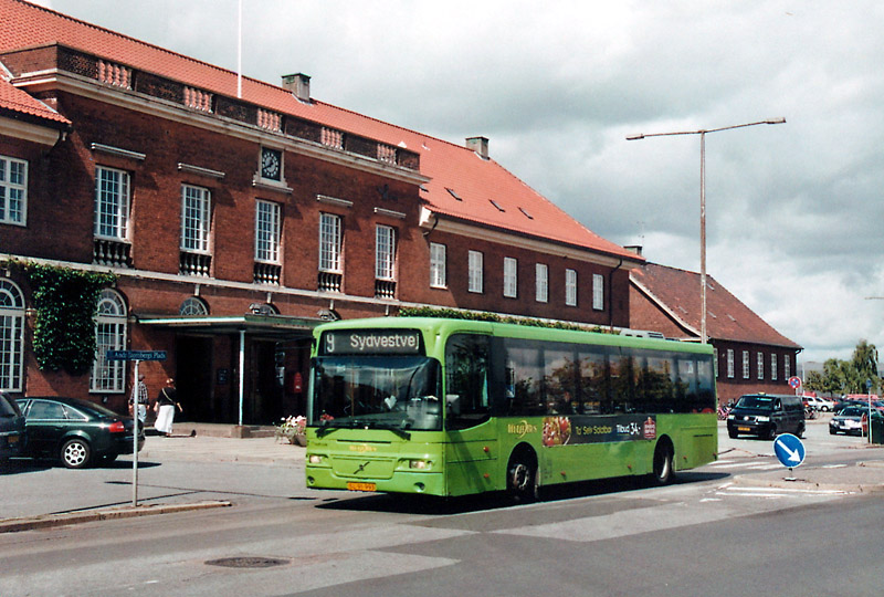 Der Bahnhof kann ein recht stattliches Empfangsgebäude vorweisen, vor dessen Kulisse hier einer der Stadtbusse aufgenommen wurde.