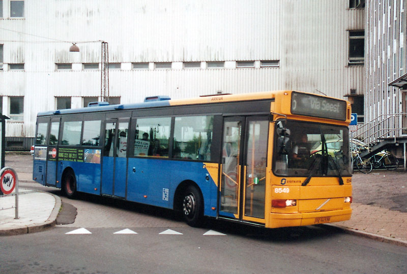 Der Wagen 8549 verlässt soeben die zentrale Haltestelle.