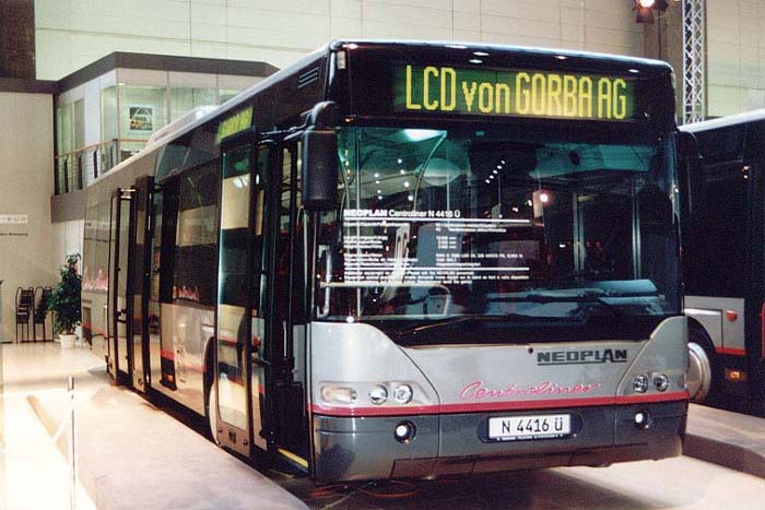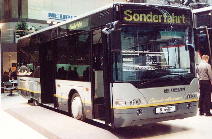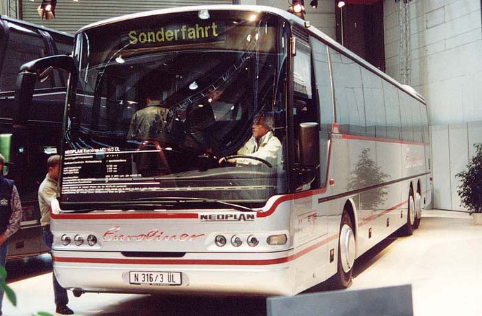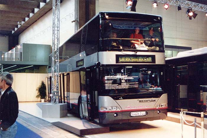 | Neoplan, einer der in Halle 8 und im angrenzenden Freigelände ausstellenden Hersteller, wartete im Reisebussektor mit dem Facelift des Evergreens Cityliner, der bereits seit den 70er Jahren produziert wird, auf. An Linienbussen zeigte man unter anderem neue Überlandvarianten des Centroliners und, gebaut vom Lizenznehmer Neoplan Polska, den Solaris Urbino 15. |