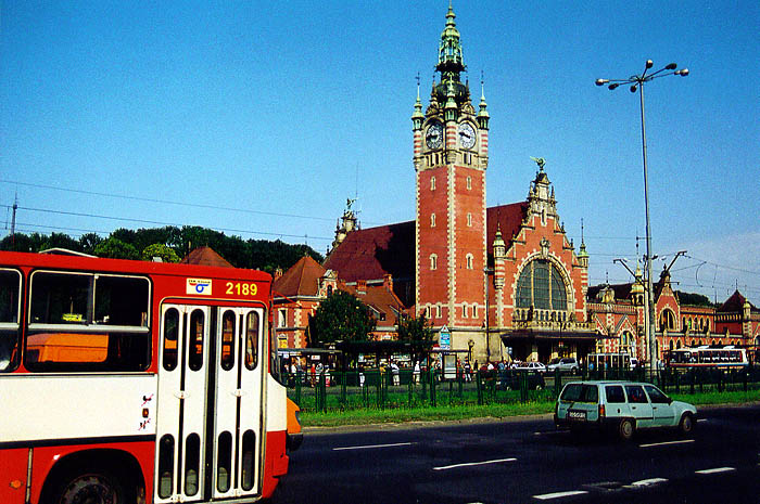 POLEN - Gdansk/Danzig (August 2004): Einer der sehr gepflegten Ikarus-Busse der ZKM erreicht den Hauptbahnhof.