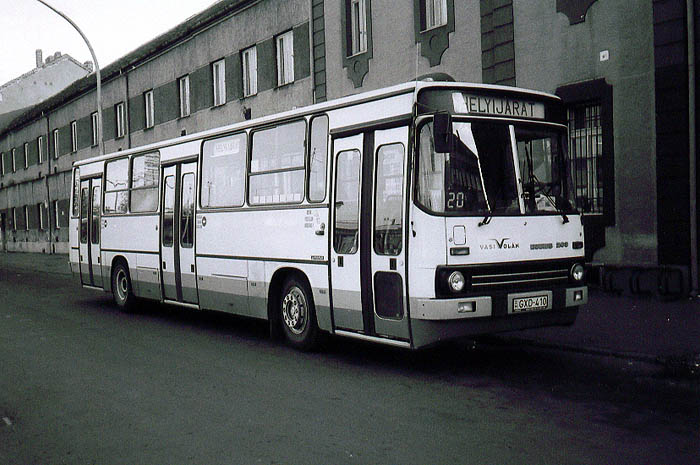 UNGARN - Szombathely (April 2001): Vor dem Bahnhof der Kreisstadt parkt ein seltenes Exemplar des modernisierten Typs 263, der von 11 auf 12 m verlängert wurde. Man beachte die kleinen seitlichen Füllfenster und das Zielschild in Linienbus-Manier. | ||