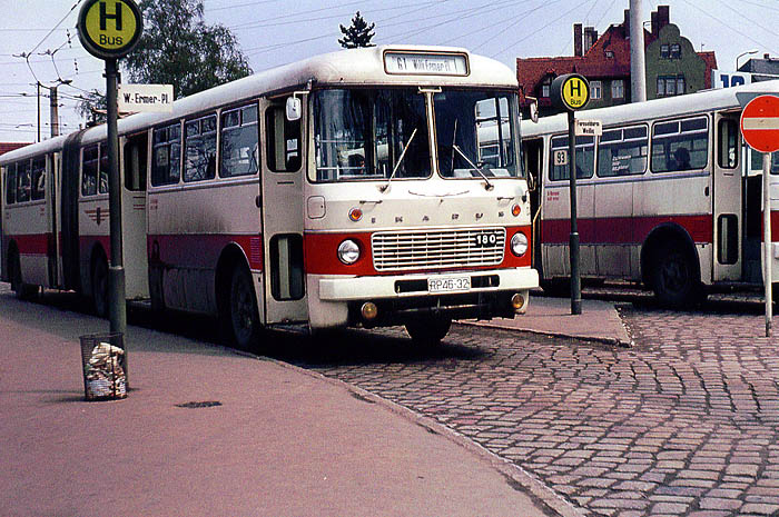 DDR - Dresden (April 1974): Der Gelenkbus-Typ 180 war der Vorgänger des „Bestsellers“ 280.