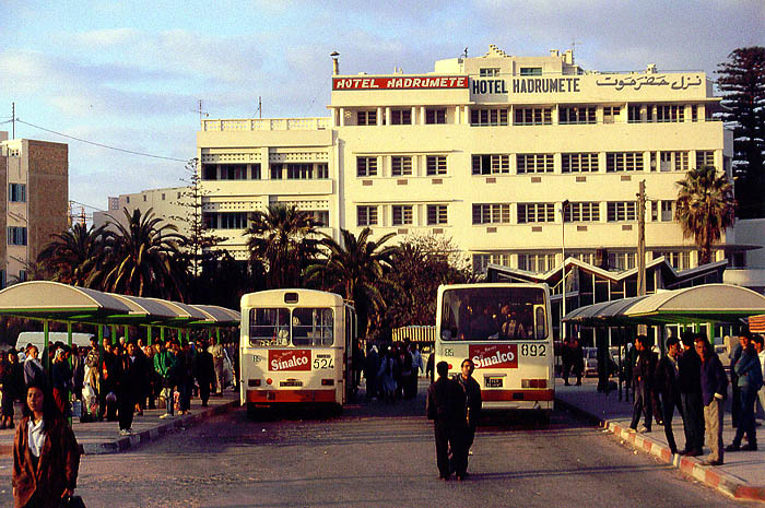 TUNESIEN - Sousse (Februar 1990): Ikarus neben Palmen.