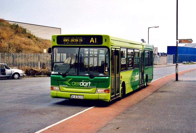 Der gesamte Verkehr auf der als A1 bezeichneten Aerdart-Linie wird mit Dennis Dart SLF mit Plaxton-Aufbauten abgewickelt. DLA3 erreicht soeben die Haltestelle am DART-Bahnhof Howth Junction. |