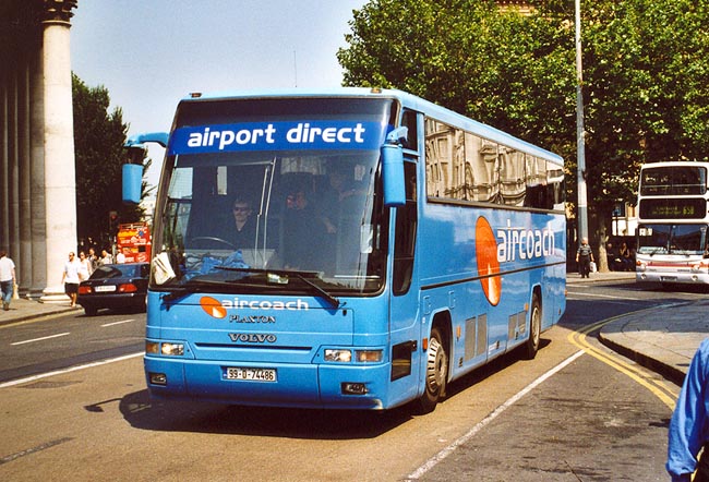 Zur Betriebsaufnahme im Jahre 1999 beschaffte Aircoach unter anderem diesen Volvo B10M mit Plaxton-Aufbau. Der Bus, der die Nummer C1 trägt, ist am College Green in der Innenstadt von Dublin zu sehen. |