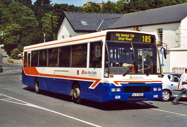 Mit 69 Exemplaren bilden DAF SB220 mit Aufbauten von Alexander (Belfast) die größte Fahrzeuggattung bei den Eindeckern von Dublin Bus. Die erst 1997 eingeführte ‚Core'-Lackierung, die als Hausfarbgebung innerhalb von nur drei Jahren die alte, auf Grüntönen basierende Farbgebung ablöste, wird hier von AD56 gezeigt. Das Bild zeigt den Bus im südlich von Dublin gelegenen Enniskerry, einem malerischen Dorf in einem verschlungenen Tal am Rande der Wicklow Mountains. |