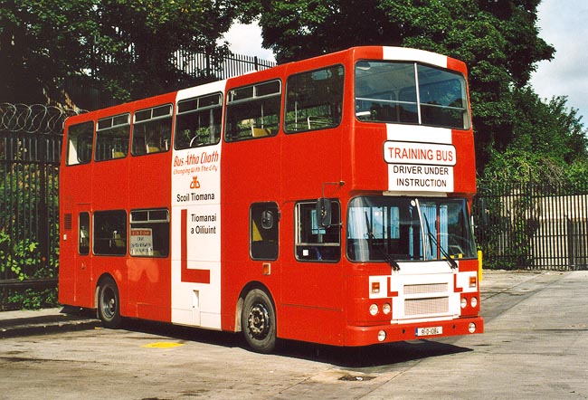 Aus dem Linienverkehr ausgeschieden ist der Leyland Olympian mit der Wagennummer RH84, er wird aber weiterhin zur Fahrerschulung genutzt und trägt eine entsprechende Lackierung. Die Aufnahme zeigt den Doppelstockbus im Betriebshof Broadstone. |