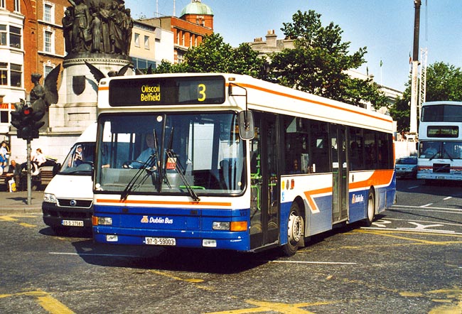 Die ersten Niederflurbusse kamen 1997 und 1998 zu Dublin Bus, als man sechs Volvo B10L beschaffte. Wiederum wurden die Aufbauten von Alexander (Belfast) gefertigt. Während die ersten fünf dieser Busse einen konventionellen Antrieb besitzen, war der sechste ein Erdgasbus und schied schon nach kurzer Zeit wieder aus dem Fuhrpark aus. VL3 ist einer der weiterhin eingesetzten Busse und ist auf der O'Connell Bridge zu sehen. |