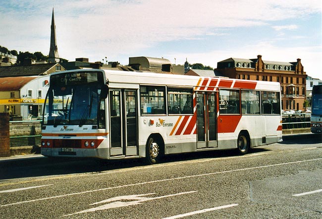 | Einer der letzten noch eingesetzten Hochflurbusse auf den ‚City Services' war DA10, ein DAF SB220 mit Alexander (Belfast)-Aufbau, der dem Stadtverkehr in Cork diente und am Merchant's Quay aufgenommen wurde. |