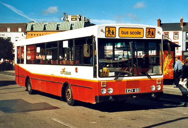 Noch immer im Schülerverkehr eingesetzt wird dieser Überlandbus aus der von den Fahrzeugwerkstätten Falkenried entwickelten Produktfamilie. Der 1985 von GAC gebaute Bus wurde ursprünglich als KR69 im Linienverkehr verwendet, bevor er zum Schulbus herabgestuft und als KS69 bezeichnet wurde. Das Bild entstand am Eyre Square in der Innenstadt von Galway. |