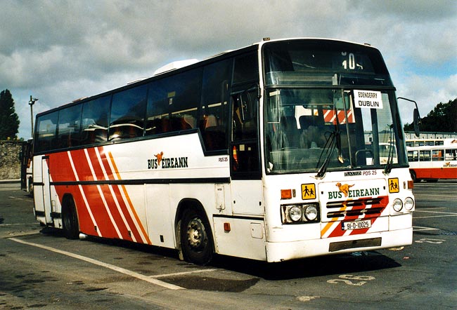 | 1991 wurde dieser DAF MB230 mit Plaxton-Aufbau für den hochwertigen Verkehr bei Bus Éireann in Dienst gestellt. Inzwischen ist das Fahrzeug für den reinen Schülerverkehr vorgesehen, wird aber in den Sommermonaten gelegentlich noch für den öffentlichen Linienverkehr herangezogen. |