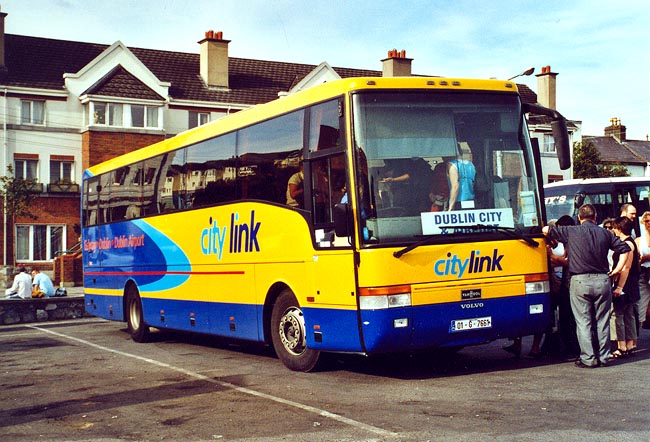 An der Endstelle in Galway nimmt ein 2001 in Dienst gestellter Volvo B10M mit Van Hool-Aufbau Fahrgäste zur Fahrt in die Hauptstadt Dublin auf. Das Fahrzeug gehört zu den ältesten Bussen des noch jungen Unternehmens. |