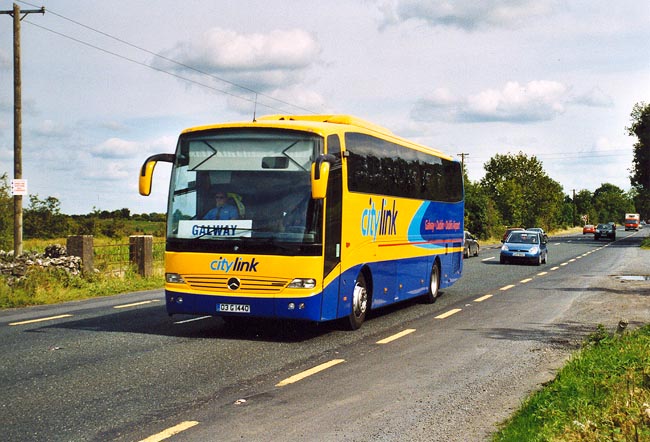 Auf dem Weg vom Dubliner Flughafen nach Galway ist hier ein EvoBus Mercedes-Benz Touro von Citylink nahe der Ortschaft Craughwell im Osten der Grafschaft Galway unterwegs. |