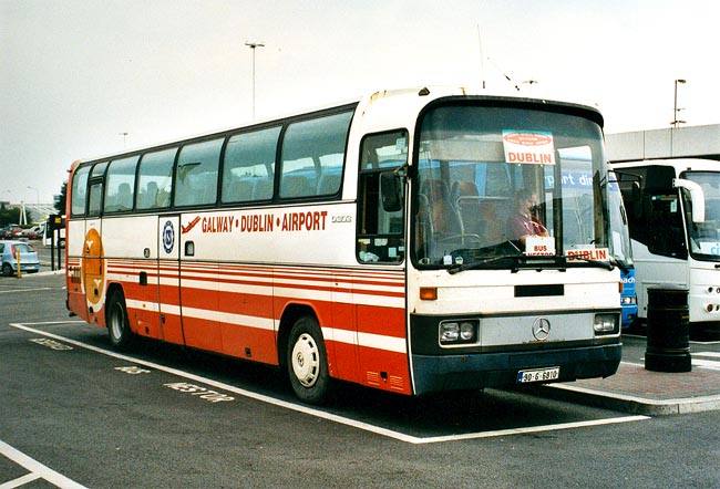 Am Flughafen Dublin wartet 90-G-6810, ein Mercedes-Benz O 303-15 RHD von Bus Nestor aus Athenry, auf Fahrgäste, die mit diesem Bus nach Galway fahren wollen.
