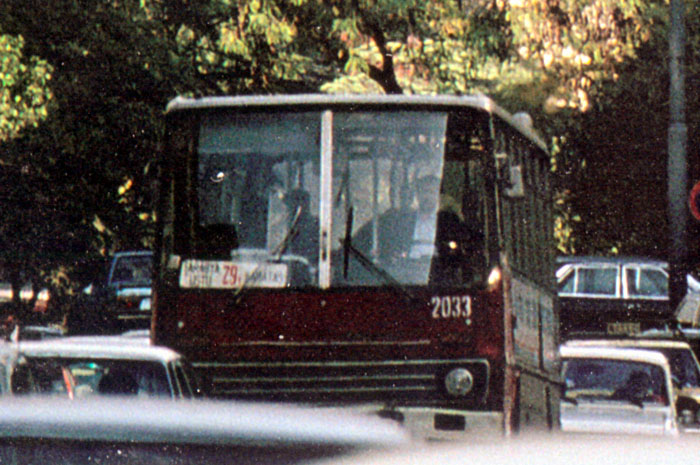 Ikarus Nr. 2033 auf der Steigung von Dolmabahçe zum Taksim-Platz (Okt. 1988).