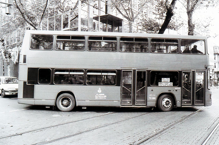 Optare-Doppeldecker Nr. 93-060 biegt ab in Richtung Sultanahmet (Okt. 1994).