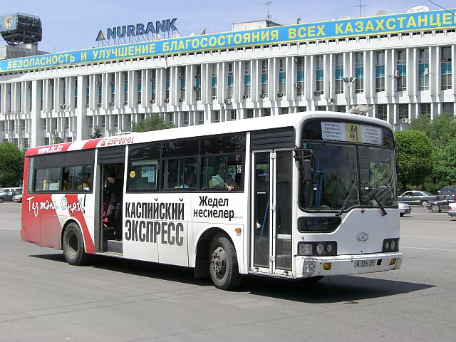 Koreanische Hyundai New Super Aero City sind inzwischen die Standardbusse in Almaty.