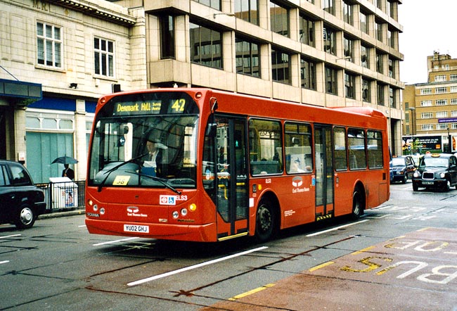 | Als Auffanggesellschaft für das in Konkurs gegangene Unternehmen Harris Bus wurde East Thames Buses als Tochtergesellschaft von London Buses gegründet, später wurde auch der Betrieb von DTS Easylink übernommen. Von DTS Easylink stammt unter anderem der hier gezeigte ELS3, ein Scania N94UB mit East Lancs-Aufbau, den ich auf der Aldgate High Street fotografiert habe. | ||