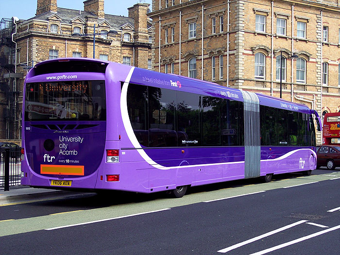 | Auch am Heck bietet ftr geschwungene Formen, die wenig an boxförmige Busrückseiten anderer Designs erinnern. Weiterhin wirbt First dort noch einmal für das Produkt und seinen Linienweg und Takt. | ||