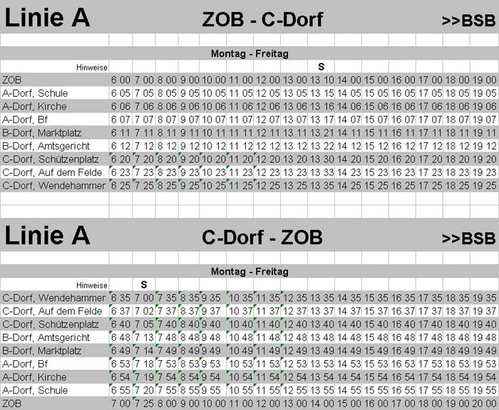 Taschenfahrplan der im Beispiel geplanten Linie A.