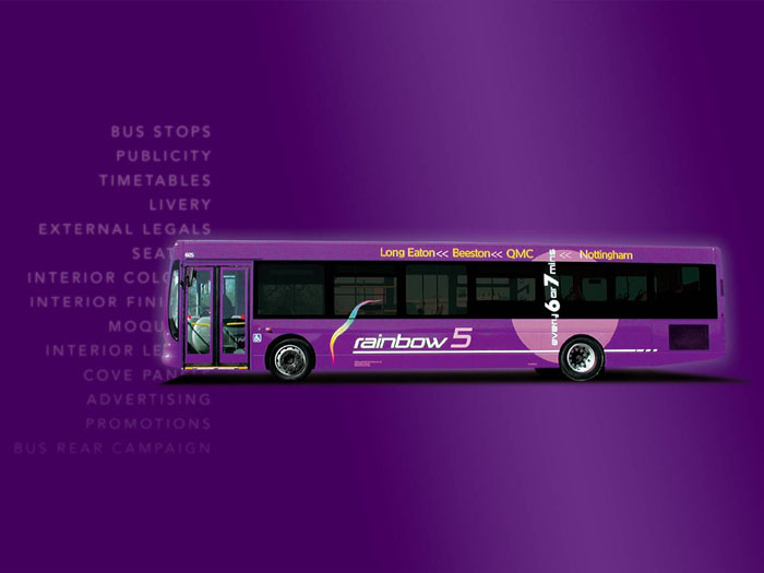 Das neue Konzept für die „Rainbow5“, die wichtigste Linie des Unternehmens: Neue Busse, neue Lackierung,