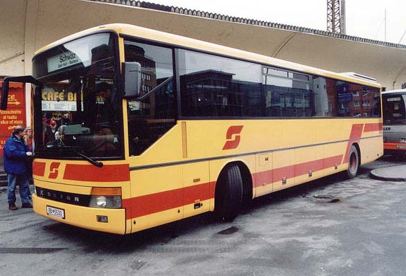 Für ein wenig Abwechslung sorgen die gelb lackierten Setra S 315 UL. Der Wagen 5530 steht hier am 29.12.2000 zur Abfahrt nach Schwaz am Hauptbahnhof in Innsbruck bereit. |