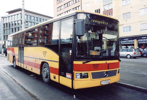 Auch beim PostBus laufen einige Fahrzeuge mit dem Stern auf der Front: Am 30.12.2000 steht ein EvoBus MB O 550 "Integro" in Innsbruck Hauptbahnhof. |