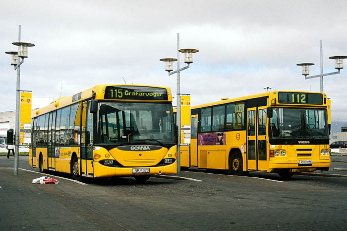 Reykjavík: Scania Nr. 09 neben Volvo Nr. 48 am Laekjartorg.