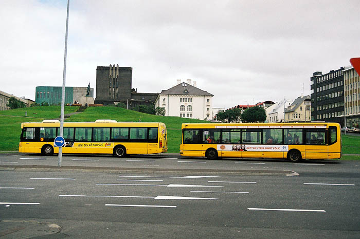 Reykjavík: Scania OmniCity und Irisbus Agora mit abweichender Heckpartie.