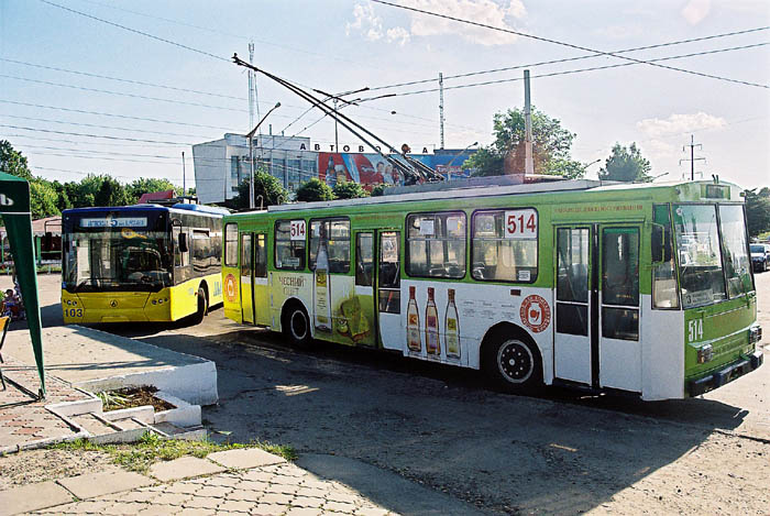 Obus 514, ein Skoda 14 Tr, und Obus 103, ein LAZ E-183, am Endpunkt Avtovokzal (Fernbushof).