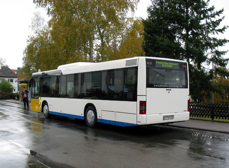 In Neuhausen erwartete die Busfreundegruppe der fabrikneue MAN/Göppel A22 (NL 313-11,2 m) des Omnibusverkehrs