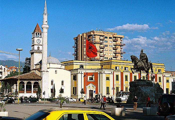 Der zentrale Skanderbeg-Platz mit den Wahrzeichen Uhrturm,