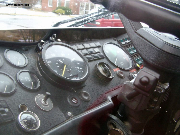 Blick auf den Fahrerplatz des MAN/Göppel Economy.
