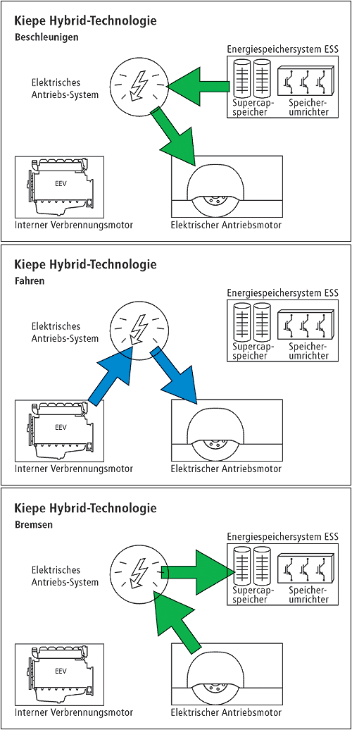 Darstellung der Funktionsweise des Serienhybridantriebs SHA der Vossloh Kiepe GmbH