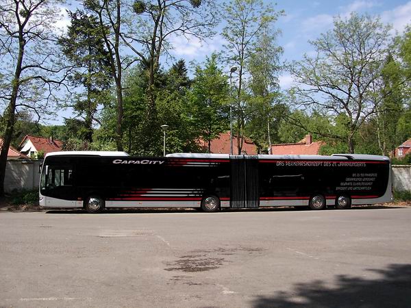 vierachsigen Gelenkbusses, der je nach Innenausstattung bis zu 190 Personen befördern kann.