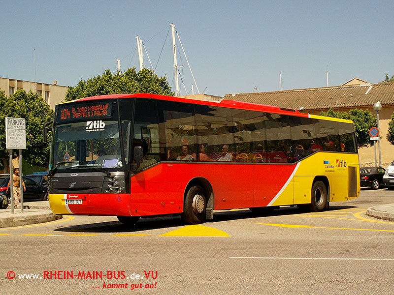 transaBus Balear S.L. setzt heute ausschließlich fremdkarossierte Volvo ein: Im Bild der Wagen 9, ein Sunsundegui Astral LowEntry (B7R), in der Ausfahrt der Haltestellenanlage „Catedral“ (Kathedrale) direkt am Hafen. | ||