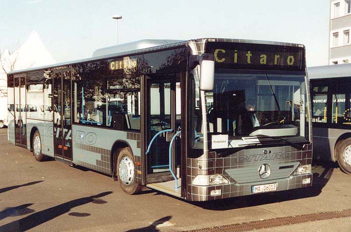 Für Probefahrten zur Verfügung stand ein weiterer dreitüriger Citaro, hier handelte es sich jedoch um die Version mit stehend eingebautem Euro 2-Motor mit stufenlosem Einstieg an der dritten Tür.